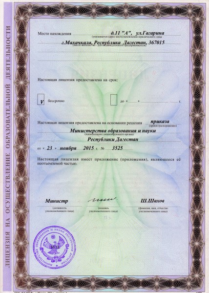 Адрес местонахождения образовательной организации* 367015, Республика Дагестан, г.Махачкала, ул.Гагарина, 11 "А"