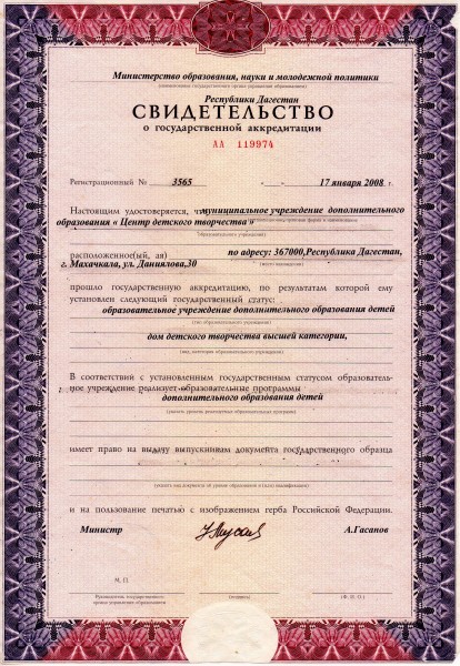 Свидетельство о государственной аккредитации